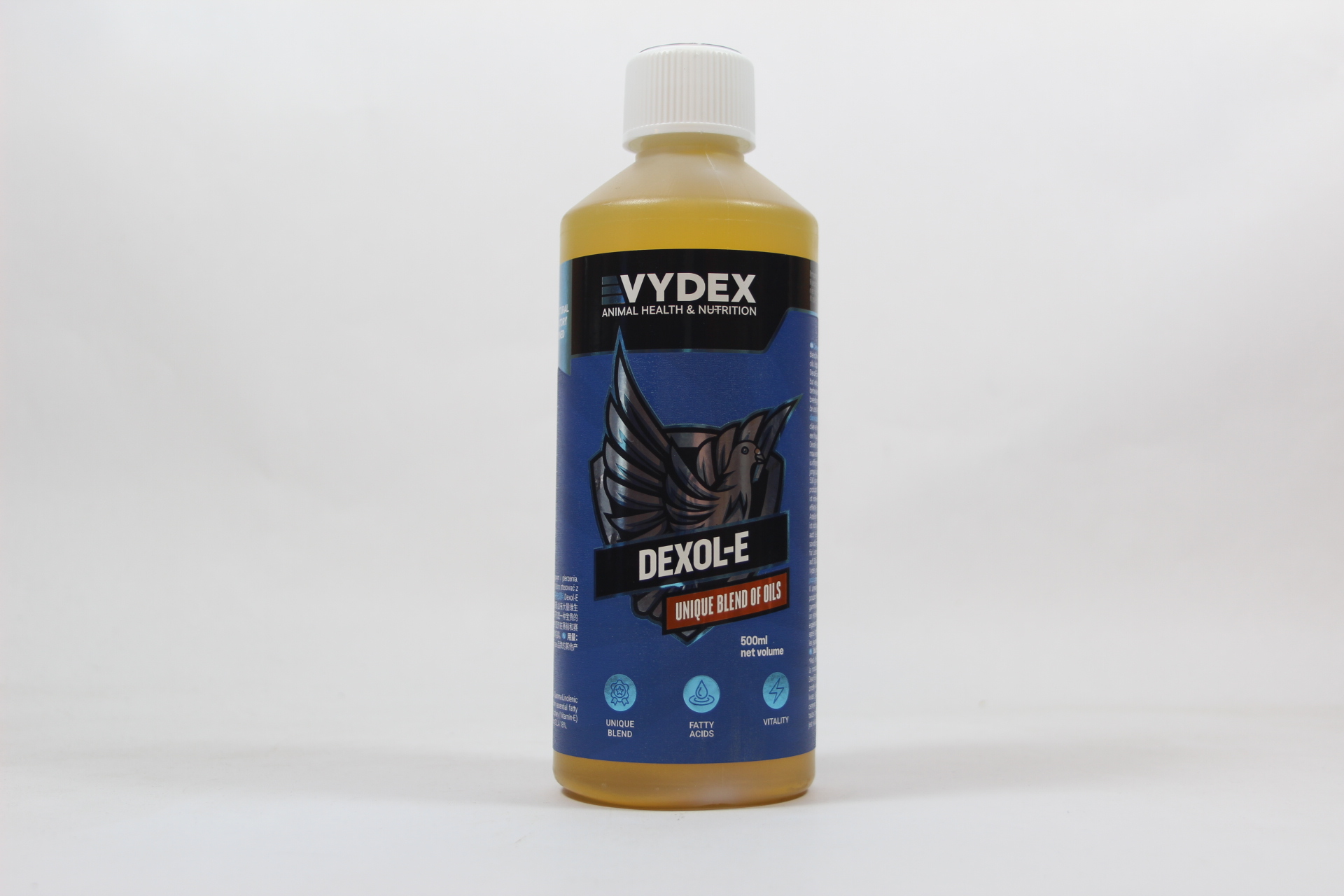 Dexol-E VYDEX – Vitamina E este un supliment lichid bogat în vitamina E, special conceput pentru porumbei voiajori și de reproducție. Susține fertilitatea, îmbunătățește condiția fizică și contribuie la performanțe sportive optime. Ideal în perioada de împerechere, concurs și recuperare.